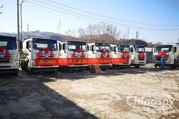 2018年10月30日,10辆中国重汽豪瀚J5G轻量化搅拌车在山西阳泉隆重交付益汇混凝土有限公司。阳泉市国资办副主任姬振良受邀参加交车仪式,并对益汇混凝土公司进行工作视察。
