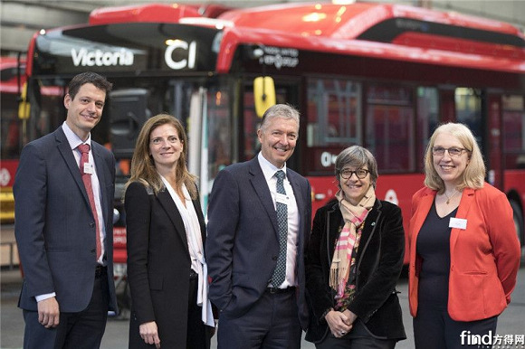 从左到右:伦敦交通局负责地面交通的总经理Gareth Powell、 RATP Dev首席执行官Laurence Batlle、伦敦交通局总裁Mike