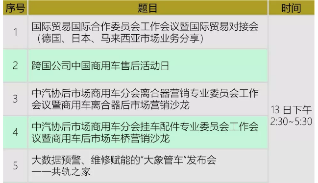 一年一度的“中国商用车后市场年度大会”,定于2020年3月13~14日在北京九华山庄酒店举行,2020年的主题是“平台崛起,供应谋变,聚焦维修”。“发布年度数据,做出趋势判断,新模式新业务推广,后市场业务对接”为大会基本功能。主题论坛、分论坛、业务专场、对接订货等1+N模式,是大会的基本呈现。商用车后市场生产、流通、维修、使用等全产业链1000人规模参会,为行业年度盛会。 [详细]