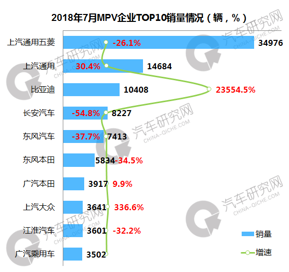 2018年7月MPV企业:比亚迪销量增幅显著 增速超过20000