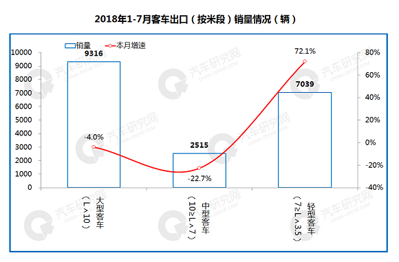 2018年7月大型客车出口量共计出口9316辆 累计增速下滑
