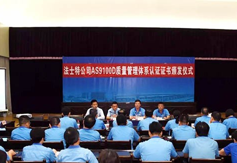 法士特获AS9100D质量管理体系认证证书