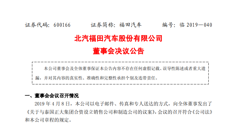开拓泰国市场 福田子公司出资5020万元与泰国正大集团