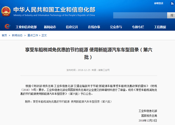 根据《财政部 税务总局 工业和信息化部 交通运输部关于节能 新能源车船享受车船税优惠政策的通知》要求,工业和信息化部会同国家税务总局对企业提交的申请材料进行了审查。现将《享受车船税减免优惠的节约能源使用新能源汽车车型目录》(第六批)予以公告。 [详细]