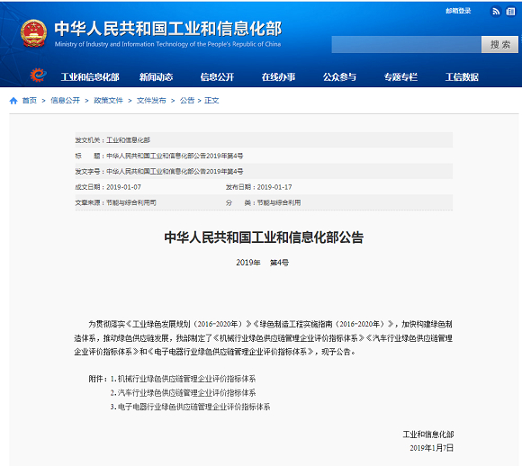 工信部发布《汽车行业绿色供应链管理企业评价指标体系