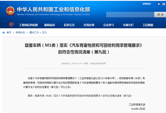 载客车辆(M1类)落实《汽车有害物质和可回收利用率管