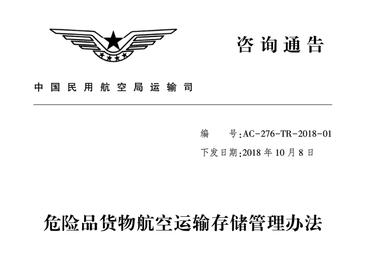 由中国民用航空局颁布的《危险品货物航空运输存储管理办法》于2019年1月1日实施。本办法适用于经营人或地面服务代理人开展的危险品货物航空运输存储活动,不适用于经营人、地面服务代理人从事危险品货物仓储经营活动的管理。 [详细]