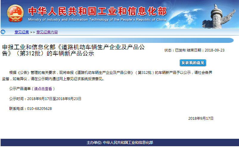 9月17日,工信部在官方网站公示了申报第312批《道路机动车辆生产企业及产品公告》,公示期7天,截止到9月23日。申报新能源汽车产品的共有121户企业的294个型号,其中纯电动产品共114户企业262个型号、插电式混合动力产品共12户企业21个型号、燃料电池产品共5户企业11个型号。 [详细]