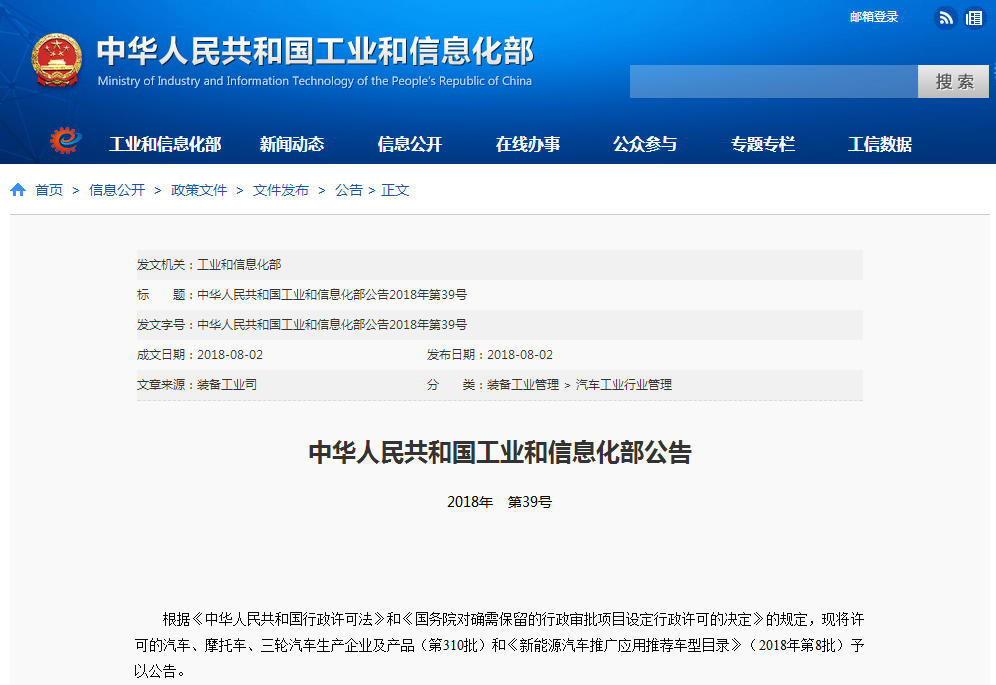 8月2日,工信息部发布第310批《道路机动车辆生产企业及产品公告》本批公告中发布了《新能源汽车推广应用推荐车型目录(2018年第8批)》,共包括111户企业的385个车型,其中纯电动产品共107户企业353个型号、插电式混合动力产品共9户企业13个型号、燃料电池产品共9户企业19个型 [详细]