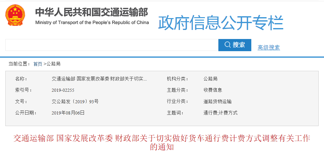 8月6日,交通运输部下发通知,要求各地方加快货车车型分类调整工作;科学测算大件运输车辆收费系数;加强收费标准调整监管;全面推广高速公路差异化收费;加快货车ETC车载装置安装;加强政策宣传解读工作。 [详细]