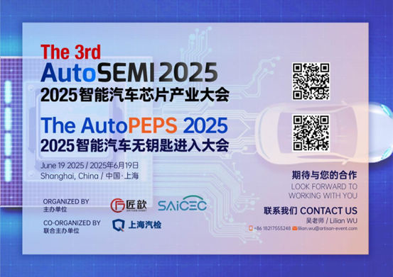 6月19日,上海,由匠歆汽车联合上海汽车芯片工程中心、上海汽检重磅打造的「The 3rd AutoSEMI 2025智能汽车芯片产业大会」与「The AutoPEPS 2025智能汽车无钥匙进入大会」双会并行。 [详细]