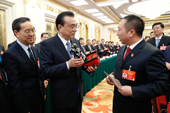 “再次见到总理,我的内心非常激动。”全国人大代表、东风商用车有限公司车辆工厂调检一车间班长王建清告诉记者。 今天,在第十三届全国人大二次会议湖北代表团审议会前,王建清代表汽车产业工人将东风天龙旗舰KX车模送给总理。 [详细]