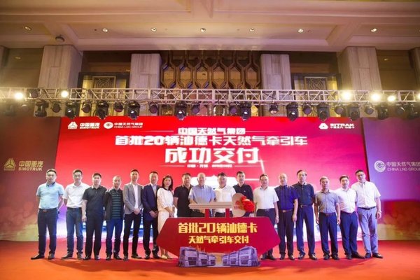2018年9月18日,中国天然气集团(00931.HK)首批20辆汕德卡天然气牵引车在江苏江阴顺利举行交车仪式。