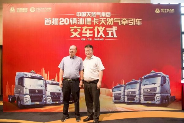 2018年9月18日,中国天然气集团(00931.HK)首批20辆汕德卡天然气牵引车在江苏江阴顺利举行交车仪式。