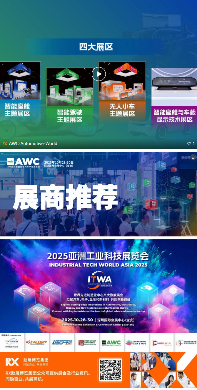 明天(10月28日),2025深圳国际智能网联汽车产业展览会(简称“AWC 2025”)将在深圳国际会展中心盛大开幕!本届展会携手海内外众多领军企业齐聚深圳,横跨智能汽车、电子技术、新型显示与先进材料等关键领域,构建从关键技术到整车应用的完整创新生态。