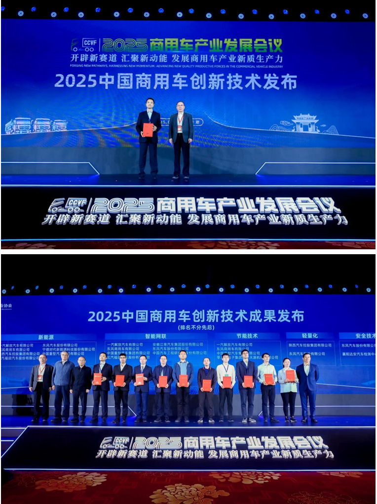 应行业的诉求和发展需要,2025中国商用车创新技术成果在本次会议上正式发布。据叶盛基介绍,中国汽车工业协会组织开展的2025中国商用车创新技术成果推荐活动,主要聚焦商用车新能源技术、智能驾驶技术、网联化技术、燃料电池发动机等,最终共有30项创新技术成果脱颖而出,充分展示了我国商用车产业链目前取得的创新成果和技术进步。陈林、徐平和竺延风分别颁发证书。