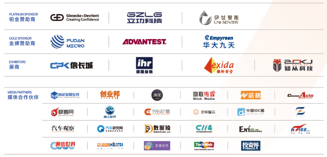 感谢铂金赞助商捷德、立功科技、伊世智能,金牌赞助商复旦微、爱德万、华大九天,展商信长城、益驰、雅析安全、知从与所有媒体伙伴的鼎力支持与贡献!