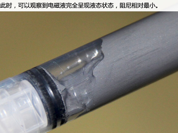 利用电极改变减震筒内磁性粒子液体的排列形状,精确改变悬挂阻尼。相比传统通过液压或者气压阀门的设计反应速度更快。