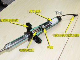 电磁感应悬挂主要由控制单元、传感器、电磁液压杆和直筒减振器组成。其技术核心是减震器筒体内的磁性粒子液体。当电磁线圈不通电时,磁性粒子不发生变化,此时该液体相当于一般减震器中的油液。当电流接通后,原来处于分散状态的磁性粒子便会重新排列,使减震器内部的液体形态发生变化,从而改变减震器的阻尼。传感器会以每秒上千次的频率探测路面,并将信号传递给控制单元改变磁场强弱,减震器的阻尼随着磁场强弱变化。