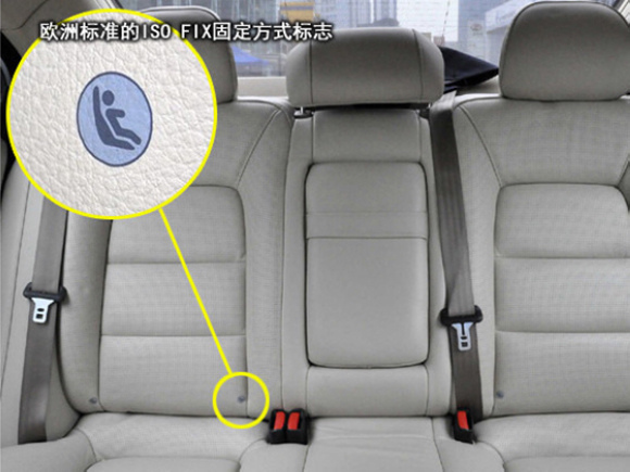 3LATCH接口LATCH全称为(Lower Anchors and Tethers for Children),是美国于2002年9月1日起要求所有车型配备LATCH儿童安全座椅接口,所以大多数美系车都会配置LATCH接口。LATCH采用三个固定点方式,更牢固,能兼容ISO FIX接口的儿童座椅。其中座椅头枕后方的接口会有一个挂钩的标志。