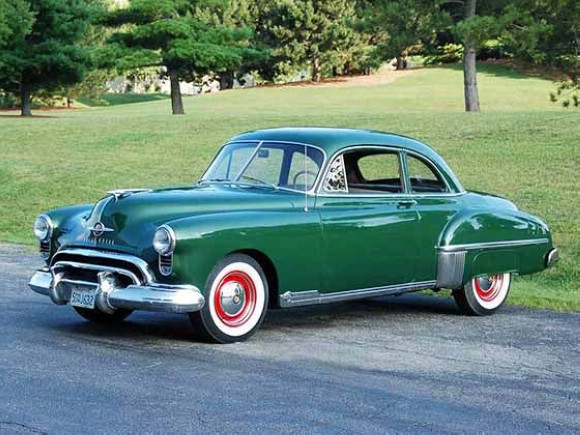 2起源关于肌肉车的起源众说纷纭,但有一种说法极为可信:1949年推出的奥兹莫比尔火箭88(1949 Oldsmobile Rocket 88)可以称作是肌肉车的鼻祖。它首次将具有强大动力的发动机——美国第一台高压缩比顶置气门V8发动机装备到了轻盈的车体上。这款车满足了当时美国民众对于性能和速度的渴望。“火箭88”是1950年NASCAR赛事的明星,在当时10场比赛中赢了8场。通过它那闪电般的成功,人们绝对有理由相信,装备了100kW(135ps)V8发动机的奥兹莫比尔火箭88就是最早的“肌肉车”。