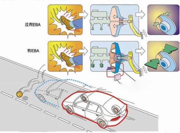 1是什么? 紧急刹车时,自动增加刹车力度,缩短刹车距离,提高安全性。