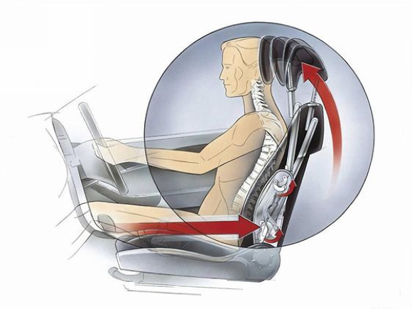 碰撞主动保护机制安置在坐椅里面,当受到激活,座椅中的机械装置会使头枕向上移,从而保护人的头颈。