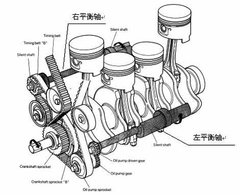 在发动机的工作循环中,活塞的运动速度非常快,而且速度很不均匀。在上下止点位置,活塞的速度为零,而在上下止点中间的位置速度达到最高。由于活塞在气缸内做反复的高速直线运动,必然在活塞、活塞销和连杆上产生很大的惯性力。在连杆上配置的配重可以有效地平衡这些惯性力.但连杆上的配重只有一部分运动质量参与直线运动,另一部分参与旋转。除了上下止点位置外,各种惯性力不能被完全平衡,使发动机产生了振动。