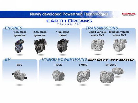 地球梦技术包括5款自然吸气汽油发动机,3款涡轮增压发动机,4款变速箱和3款混合动力总成,在未来将广泛导入本田的产品中。