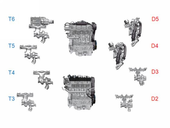 而Drive-E 最大的特点是使用了模块化生产,汽油版与柴油版发动机零件的70%都是可共用的,这样在成本上就可以得到控制。所以Drive-E T5与T6发动机在整体大部分来说是一样的,只是T6的发动机会使用尺寸更大的涡轮增压器以及机械增压器。