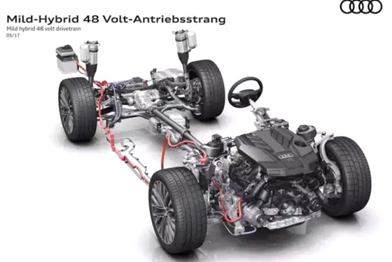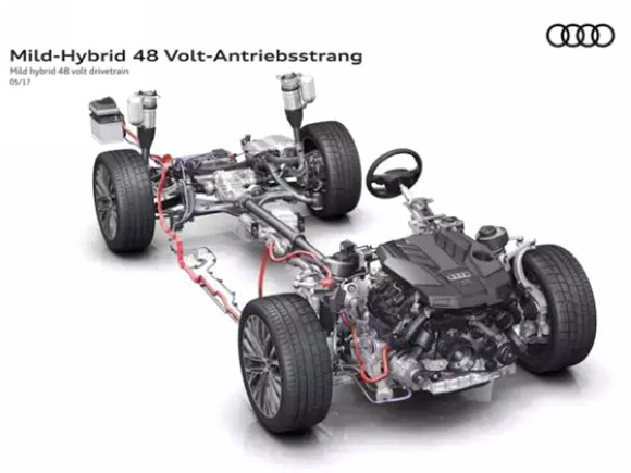 1是什么? 48V轻混系统是在12V蓄电池基础上,增加一套48V锂离子电池的混动系统,其中,12V电路负责处理传统电气负载,如照明、点火、音响系统等。48V电路负责支持主动式底盘系统、空调压缩机以及再生制动系统等。