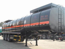 油罐式半挂车载货部位结构为罐式结构的半挂车。主要用于运输液体、散装物料和散装水泥等。