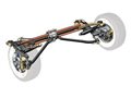 在拖曳臂式悬架的设计过程中,横梁在纵臂上的安装位置不同其表现出来的性能会非常的大,若横梁安装越靠近纵臂与车身的连接点,车子的舒适性就会越好但转弯时的侧倾也会大些。若横梁的安装在越靠近纵臂接近车轮中心,舒适性能会大打折扣,表现出来的特性则是以通过性和承载性为主。也更接近整体桥的设计。