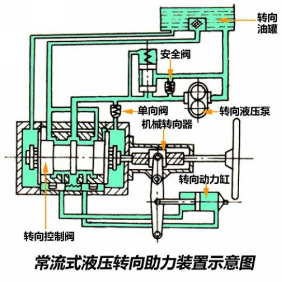 常压式液压助力系统的特点是无论方向盘处于正中位置还是转向位置、方向盘保持静止还是在转动,系统管路中的油液总是保持高压状态。