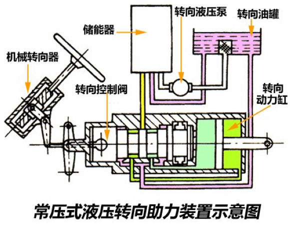 根据系统内液流方式的不同可以分为常压式液压助力和常流式液压助力。