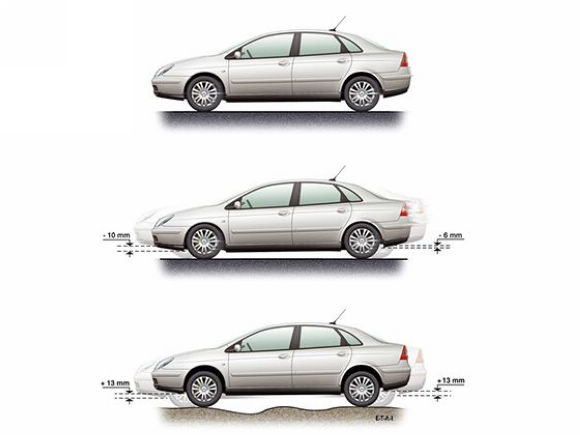 液压式可调悬架。顾名思义,就是利用液压变化来调节车身的悬架系统。它的核心部件是一个内置式电子液压集成模块,可以根据车辆行驶速度对减震器的伸缩频率和程度加以调整。与空气悬架相仿,它也可以对底盘高低进行调节。