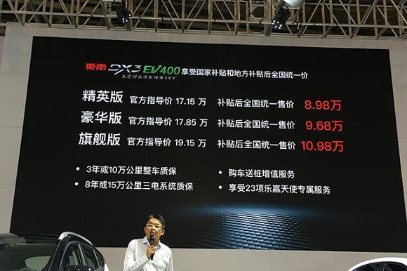 里程提升 东南DX3 EV400补贴后售价8.98-10.98万元