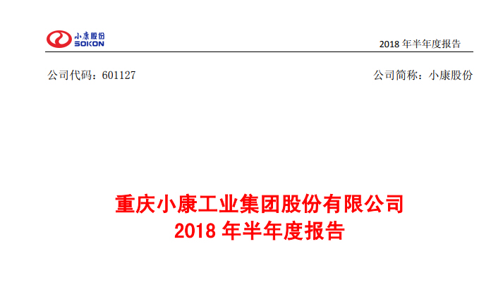 附件:重庆小康工业集团股份有限公司2018 年半年度报告