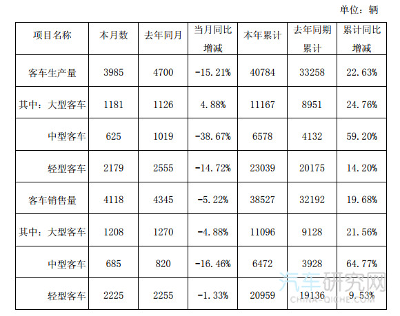 ▲ 金龙中型客车1-8月累计产量6578辆,同比增长59.20%;1-8月累计销量6472辆,同比增长64.77%。