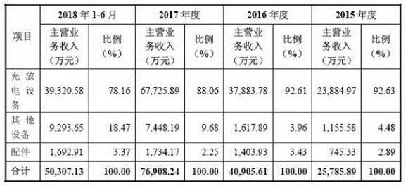 从营收结构来看,杭可科技的主要产品是充放电设备,合计销售收入占主营业务收入的比重均在75%以上。