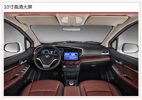 淮柴英致737EV三幅式方向盘前方双圆盘仪表带有LED背光,中间10寸高清大屏下方为三个空调控制旋钮,操作十分便捷;新车侧面门板处采用了真皮材质包裹,搭配精致的木纹面板,提升档次。此外,这款电动MPV标配双安全气囊、高清可视倒车影像、儿童安全座椅接口、带溃缩功能的转向柱及ABS+EBD等安全配置。