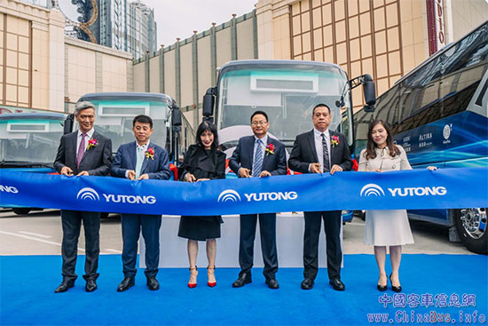 参会领导为宇通澳门纯电动启用仪式剪彩