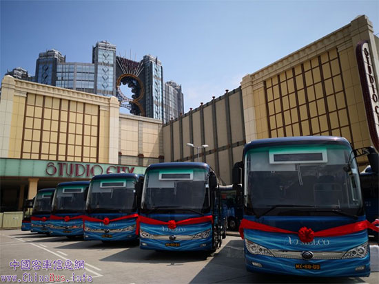 20台宇通纯电动客车在澳门投入使用。车型包括18台纯电动旅游客车E11(ZK6109BEVHA)和2台纯电动公交车ZK6105BEVG,所有车辆均由澳门新濠博亚采购,并将用于酒店游客接驳。