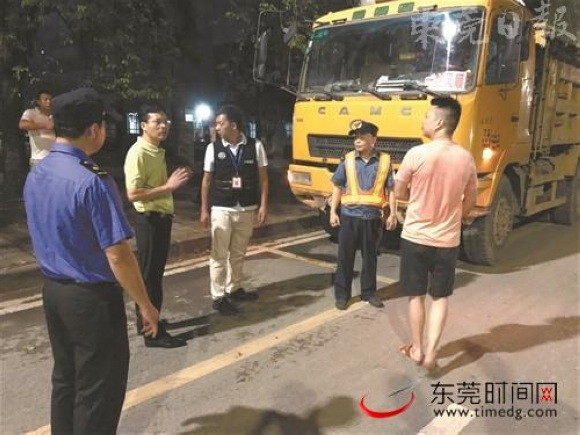 联合执法小组夜查泥头车“扬撒滴漏”等违法行为