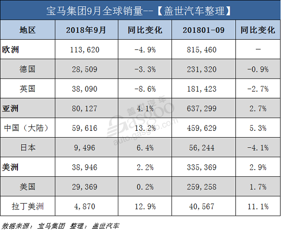 尽管如此,除欧洲以外,宝马在亚洲及美洲地区分别实现了4.1%和2.2%的增长。其中,宝马在中国地区9月份的销量尤其强劲,共售出59,616辆新车,同比增幅达13.2%。截至到9月底,宝马集团在华累计销量同比增长5.3%至459,629辆。
