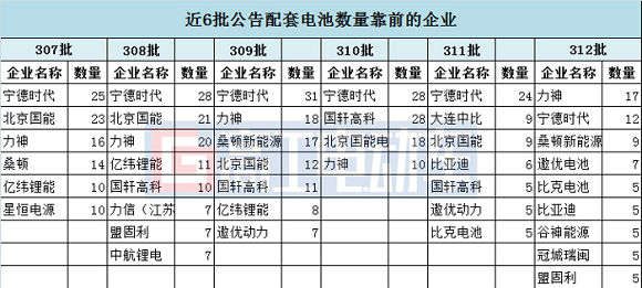四是,配套电池开始集中,前五名企业配套数量占5成左右。高工电动车网注意到,在近6批公告中,宁德时代、北京国能、力神、国轩高科等企业配套数量基本上在前五位,且前五名企业配套电池数量占比均在5成左右。
