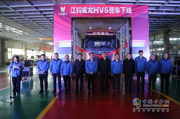 “我宣布江铃威龙HV5整车下线!”随着综改示范区管委会张金旺主任嘹亮的口令下,威猛大气的江铃威龙HV5缓缓驶出了下线工位。