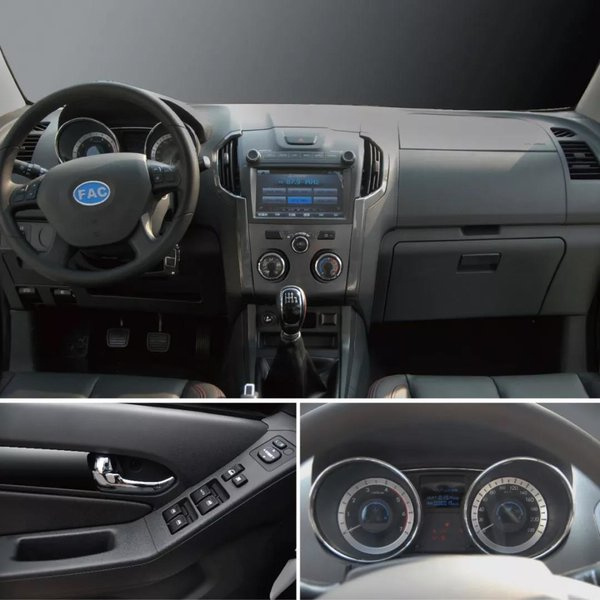 做人要内外兼修,做车更是要表里如一,豪华的内饰绝对也是加分项;采用轿车化的中控布局并符合人体工程设计,T型中控台,布局简洁,符合工具型皮卡的要求。在整车配置方面具有多功能方向盘,可调节的皮质座椅、中控区的8英寸屏幕配备蓝牙电话、导航、收音机、倒车影像等多种功能,另外还配有双安全气囊、ABS系统、胎压监测等多种兼顾舒适性和安全性的配置。