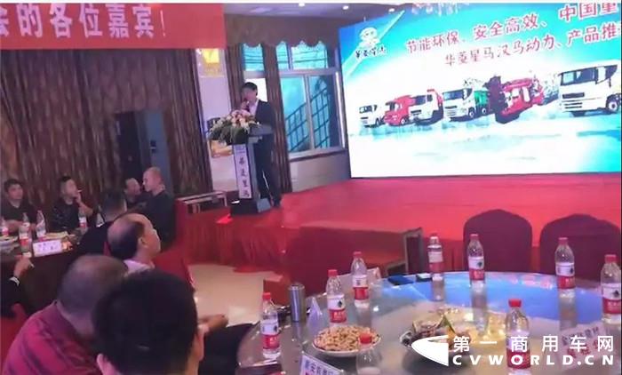 华菱星马汽车集团总经理助理葛晓生也现身活动现场,向与会客户代表介绍华菱星马发展历程,传递华菱星马产品价值和企业文化。葛晓生说:“优秀的企业没有一家不实施品牌战略、不追求品牌效应。2004年,华菱重卡走向市场,就提出了‘定义重卡新标准’的理念,把品牌定位为高端。为了打造高端品牌,华菱星马开发出了节能环保、可靠性高、设计人性化的高端重卡产品,后来向欧洲先进技术看齐,先后开发了具有国际先进水平的汉马汽车系列产品和发动机、变速箱、车桥等三大核心零部件总成,占领了技术的制高点。同时,华菱星马还引进卓越绩效管理模式,提升制造工艺水平,强化质量管理,打造高质量的产品,完善营销服务网络,提升服务能力,打造亲情服务品牌,为客户提供及时、周到和个性化的服务。现在,我们的技术领先性获得了用户认可,产品品质在用户中形成了非常好的口碑,服务能力受到用户好评,品牌影响力日益增强,华菱重卡的高端品牌形象已经深入人心。也希望借助此次盛会,让每一个走进活动现场的客户朋友,都能感受到华菱星马汽车品牌发展的精神和价值理念,最终实现合作共赢。”