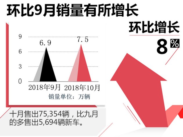 广汽本田10月销量75,354辆,同比去年10月增长7%,环比今年9月增长8%。品牌下俩大主力轿车均已完成换代,销量也在节节高升,在今年最后这两个月中有望带动总体销量,完成本田年初定下的75万辆的销量目标。